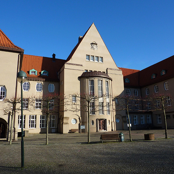 Die Rathausanlage in Delmenhorst ist nach dem preisgekrönten Entwurf des Bremer Reformarchitekten Heinz Stoffregen gebaut worden.
